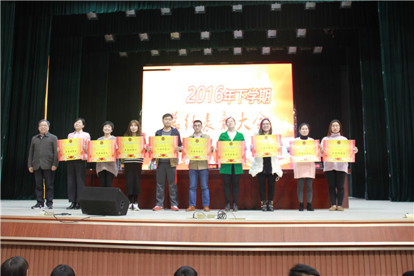 2017年3月1日下午,我校在汇美馆隆重的举行了“2016年下学期学生工作总结表彰大会”。出席本次会议的领导有党委书记张国斌,学生科科长周曦、学生科副科长彭繁珍、学生科副科长彭亮。
