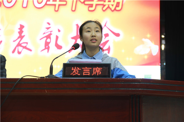 大会开始第一项,学生科科长周曦老师就2016年下学期学生工作进行总结。周科长充分肯定了同学们在2016年下学期取得的骄人成绩。从文明创建到实践活动,每一件事都体现出了我校优良的学风。三自活动、阳光体育、朗诵比赛等等一系列校园活动都是学校引以为傲的传统和成就。周曦科长不仅谈到学校和学生在上学期的进步,还提起了团委学生会的干部们,她们关心着学校的最新动态,与老师密切联系,一心一意的付出,周科长由衷希望新学期的团委学生会会迈向更新的高度。