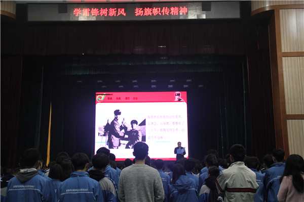学校党委张国斌书记首先从铿锵有力、催人奋进的视频《学习雷锋好榜样》引入,呼吁我们长信的广大教师学生应该将雷锋精神转化为读书肯吃苦、工作肯实干的精艺、乐业精神。然后列举春节期间,中央电视台《中国诗词大会》的冠军16岁高中生武亦姝,竭尽全力,像雷锋一样肯吃苦、爱学习的故事,期望同学们学习雷锋吃苦耐劳的精神,不怕吃苦不怕累,虽恃年少,不负韶华。接着,通过雷锋同志以苦为荣、磨炼意志、发奋图强,在学习投手榴弹过程中,遇到困难,不畏怯逃避,卯足干劲,勇往直前,最终能够准确地命中目标的故事,期望同学们学习雷锋,艰苦奋斗、不放弃的精神。最后,张国斌书记与全体师生共勉,倡导全校师生行动起来,立足长信的现实,面向世界、未来,扎扎实实地备好每一节课、上好每一节课,学自己能学的,做自己能做的,学习雷锋乐于助人、甘于奉献的精神。