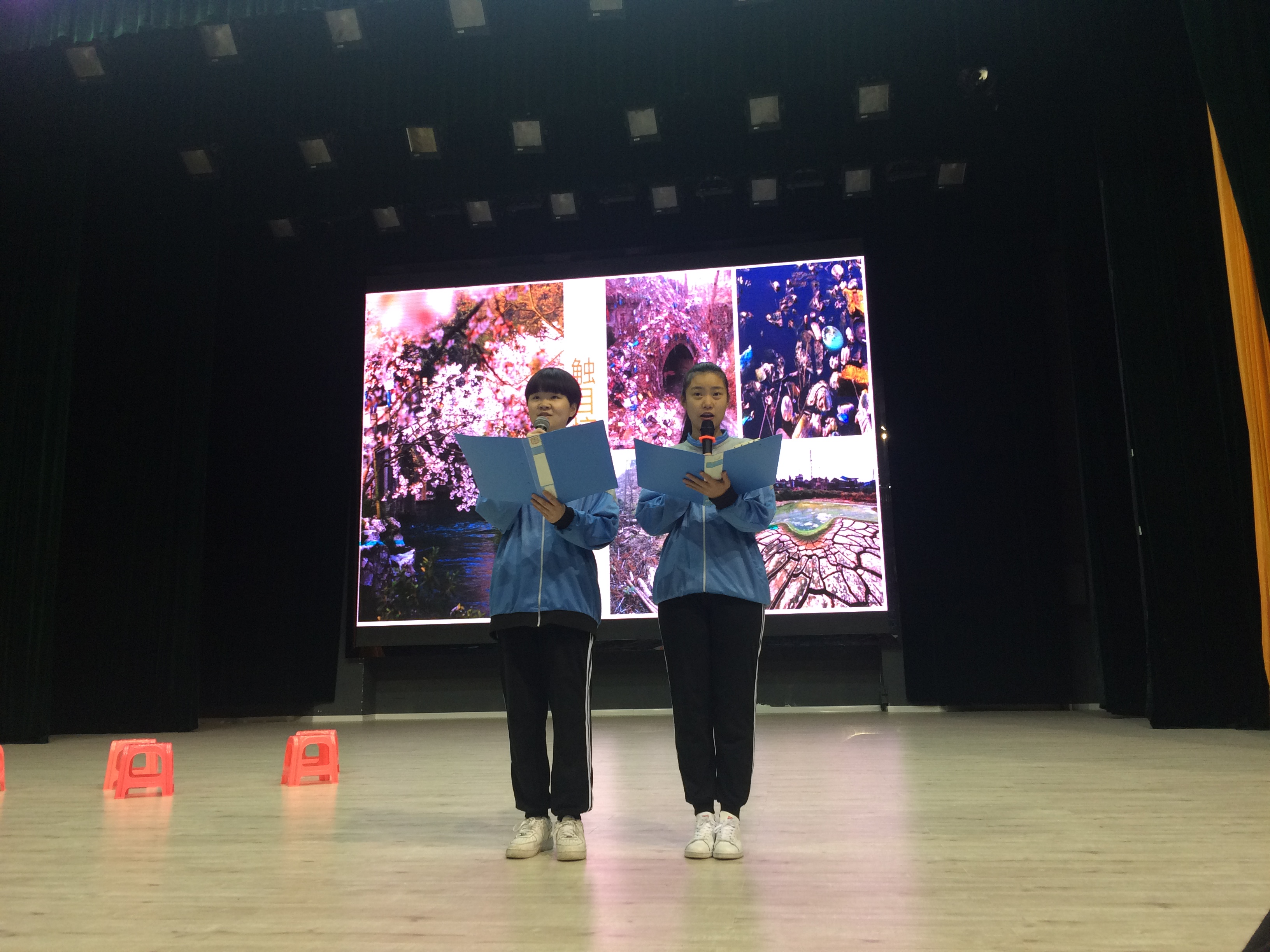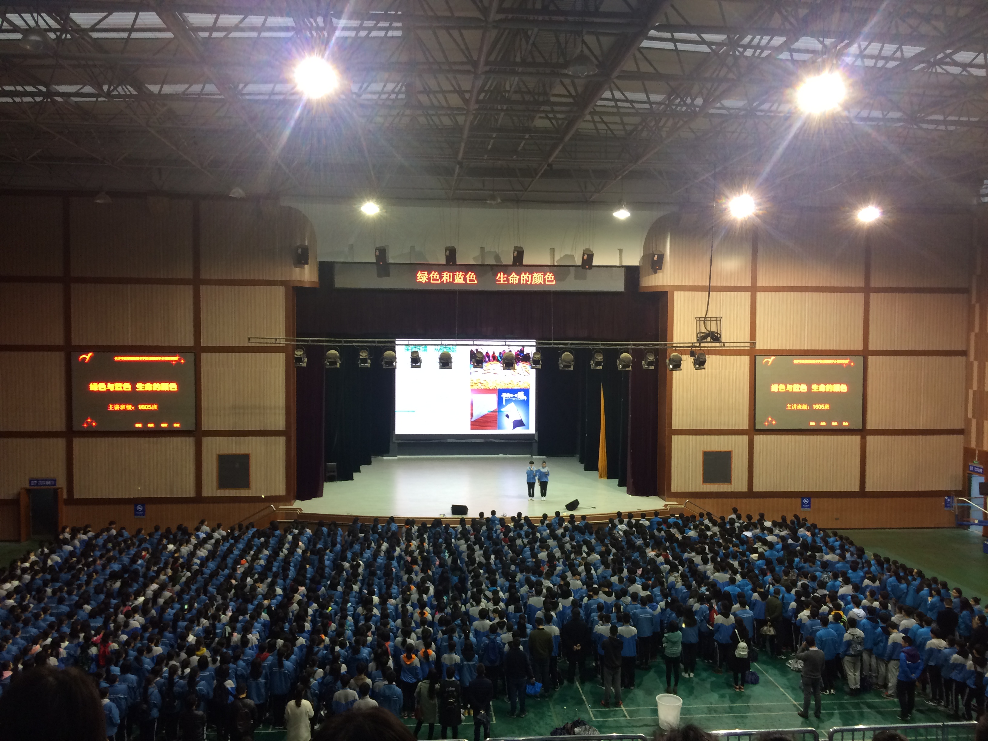 随着世界经济的迅速发展,严重的生态破坏和环境污染问题已成为当代社会面临的重大问题。为了号召同学们“爱护环境,从我做起”,3月13日,由1605班同学以“蓝色和绿色 生命的颜色”作为主题,在汇美馆如期进行了精彩的国旗下讲话。