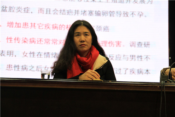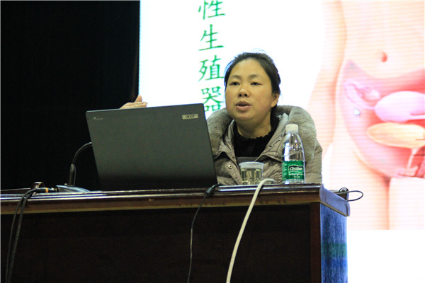 王医生的讲座从四个方面展开:什么是青春期,青春期保健,人类的繁衍,青春期性行为和少女妊娠。王医生详细讲解了青春期的身体和生理的变化,尤其是性发育知识;接着科普了月经期的保健、青春痘的预防与护理、乳房的保护青春期保健知识等。最后,王医生披露我国青春期性行为现状以及少女妊娠的危害。一系列触目惊心的图片和数据,令在场的女生们惊叫连连,她们更加直观地感受到过早性行为和无保护性行为的危害,对正确的避孕方法更加上心。王医生寄语大家“春天做春天该做的事,夏天的果实就让它留在夏天接受阳光吧!”