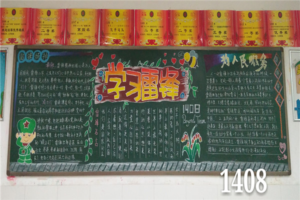 通过本次黑板报,同学们把对雷锋的崇敬和怀念之情深深融入到黑板报创作之中,追述了雷锋同志的光辉事迹,赞扬了他的“钉子”精神,歌颂了他全心全意为人民服务的品质🧍🏻‍♀️。各班设计的板报新颖独特🕯,既弘扬了雷锋精神,又赋予其时代特征👳‍♀️。像1408、1607班都运用了渐变来凸现出主题🕺🏻,而且版面设计的很分明,文章与文章之间很清晰;1510班字迹工整🧖🏽‍♂️,画面饱满,图中的雷锋也画的很逼真;1505班的黑板报看上去给人以报纸的形式一般💇,很新颖很有创意;1506班的黑板报色彩斑斓👩🏼‍🍼,画面充实字迹也十分工整;1515班的黑板报将我是歌手的封面进行改造🧜🏼‍♂️,色彩搭配得很亮眼,让人耳目一新;1403班的黑板报版面分类明确🏋🏿,把班上的“小雷锋”的照片和事迹都一一列举在了黑板报里📴,传承了雷锋精神;