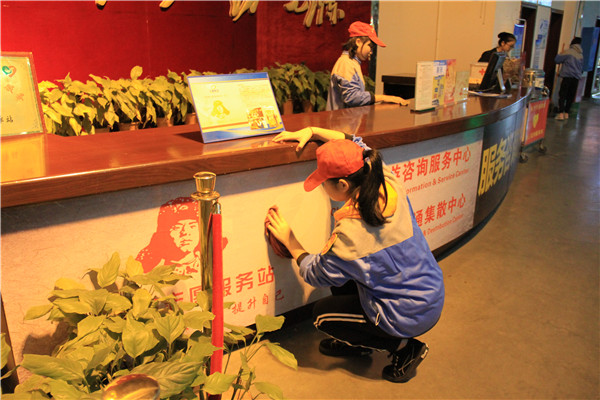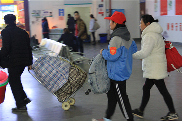 在经过汽车站工作人员的简要培训后,26名师生志愿者进行了分工,投入到此次志愿服务活动中,售票大厅、服务台、进出站口、候车厅等地方都活跃着志愿者们热情服务的身影,他们积极主动的为旅客提供行路指引、友善提醒不要吸烟、回答旅客的咨询、协助公共秩序引导、为老弱病残孕旅客提拿行李、提醒旅客注意保管好自己的财物等等。与此同时,为保持车站的清洁卫生,学生志愿者们还担负起了服务台、广播室等区域的卫生清洁工作。短短的一上午,志愿者们收到了无数声的谢谢,而他们忙碌的身影成了汽车站一道靓丽的风景线,穿梭于各个候车厅,不为任何回报,只愿旅客一路顺风。