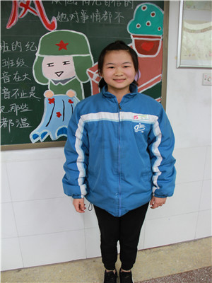 简介:她乐于助人,主动帮助同学。在下雨天,她会牺牲自己的休息时间,在走廊仔仔细细的摆放好同学们的雨伞,不过多久她就能把凌乱的雨伞摆放得整整齐齐;或者有时候会细心将没一把雨伞折叠好挂在走廊扶梯上,她以人为乐当别人在玩手机时,她却为班级在奉献,这种“雷锋精神”值得我们班每个人学习。