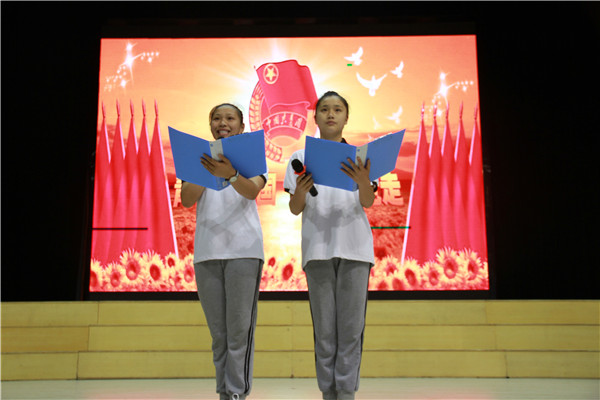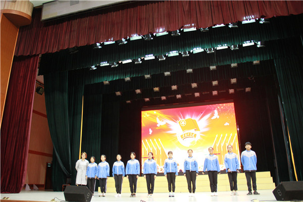 5月8日早,我校全体师生齐聚在汇美馆参加1403班主讲的“不忘初心跟党走”国旗下兼入团仪式。