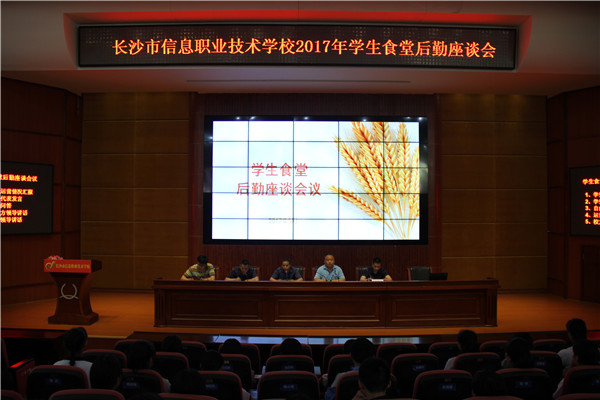 2017年5月18日,为了让同学们得到更好的膳食管理,也为了给同学们一个平台,针对同学们对学生食堂的建议,把学生食堂打造得更加完善。故此长沙市信息职业技术学校在汇智厅举行学生食堂后勤座谈会。