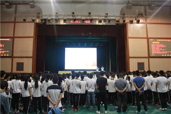 6月5日清晨,全校师生齐聚汇美馆,参加由1505班以“阳光向上 自信成长”为主题的国旗下讲话。