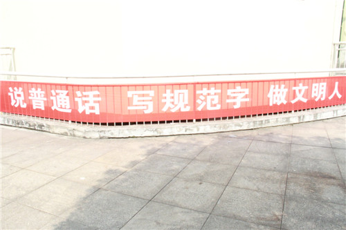 一是利用星期一升旗仪式,进行“说普通话 做文明人”的国旗下讲话。9月18日,我校于德馨楼前坪举行了升旗仪式,语文组毛提老师做了主题讲话,她告诉同学们,普通话是人与人之间交流的标准语言,说好普通话能提高综合素养,让自己成为更出色的职业人。学生科副科长彭亮老师从普通话讲到了文明人,他呼吁同学们积极参加推普周活动,并在日常学习生活中做一个讲文明守文明的人,用自身的行动将文明落到实处,做到“文明在我心,我心有文明”。