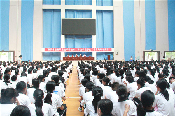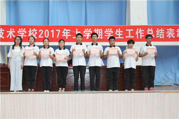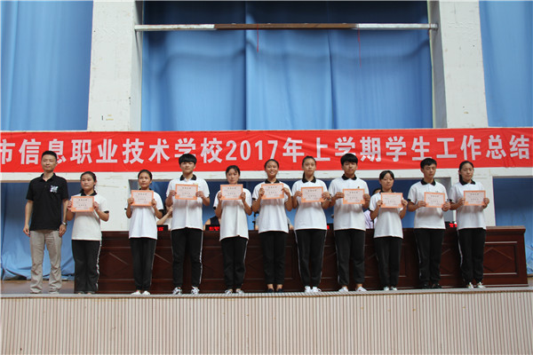 为树立先进典型,发挥示范引领作用,激励全体学生积极进取。9月27日下午,我校在职教基地体育馆召开2017年上学期学生工作总结暨表彰大会。与会人员有:周文华副校长、学生科周曦科长、彭繁珍副科长、彭亮副科长、团委黄丽辉副书记及学生科全体科室成员、所有班主任及学生。会议由学生科彭亮副科长主持。