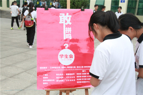 随着新学期的开始,我校又迎来了一批充满青春气息朝气蓬勃的一年级新生。为了让同学们在学校中得到更多的锻炼与展示,也为了校团委学生会工作可以更好的开展,保证校团委学生会注入更多新鲜的血液。我校于9月展开了校团委学生会招新工作,并顺利落下帷幕。