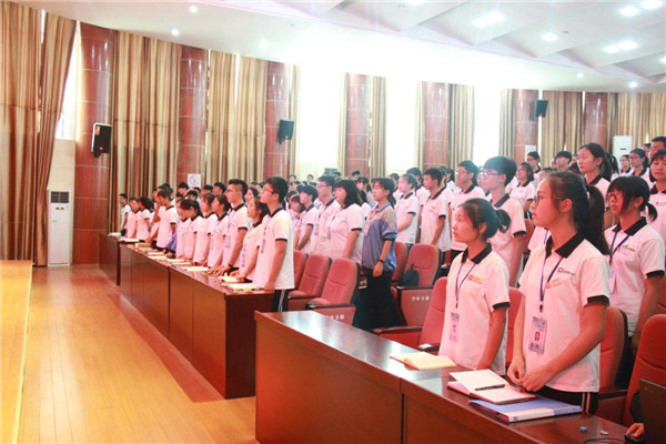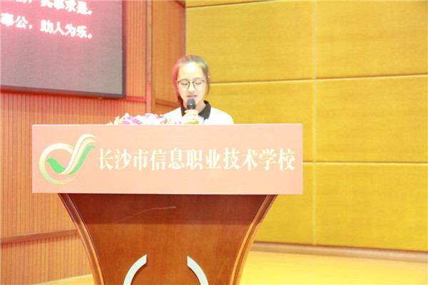 广播台台长作为主持人表达了对新干事的热烈欢迎,齐奏团歌、佩戴团徽的仪式,让广大学生会成员意识到自己是团委学生会的一份子,要处处起模范作用,为团委学生会贡献自己的绵薄之力。新干事代表文娱部1709班的罗嘉念同学谈到了自己当初报名,到如今进入实习期,内心十分紧张和焦灼,为了更好地在学生会提升自我和服务他人,她给自己制定了一个个计划,期望自己能够热爱自己的工作岗位并持之以恒。