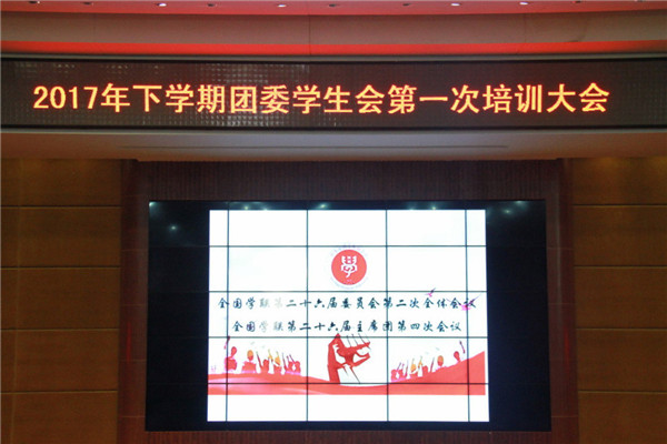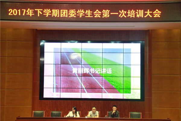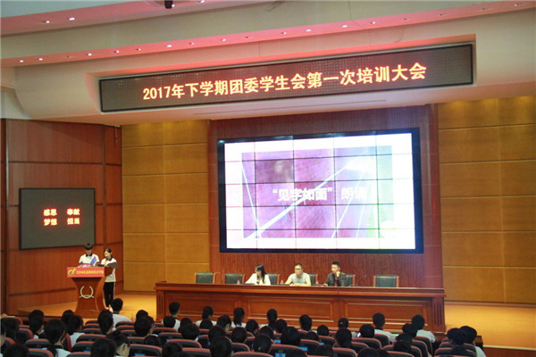 10月9日,阳光明媚,我校在汇智厅召开了2017年下学期团委学生会第一次培训大会,此次大会主题为“感恩·奉献·梦想·担当”,参加本次大会的有学校副校长周文华先生、学生科科长周曦先生、团委副书记黄丽辉女士以及全体学生会成员。