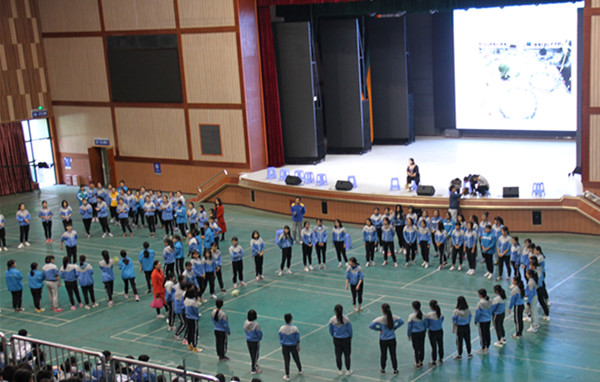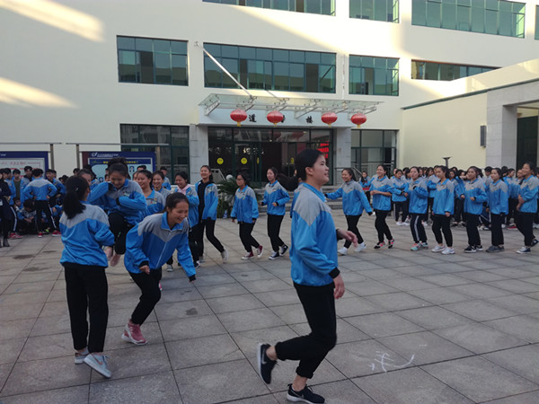 第六节课下课后,各班学生伴随着《运动员进行曲》向事先查看好的场地迅速集结,顿时校园里人头攒动,一片热闹的景象。数分钟后,二、三年级学生在班主任的组织下,以班级为单位整齐有序地站在指定的位置,认真地倾听裁判员老师讲解有关比赛的规则和计分方法。接下来,同学们在班主任的统一组织下进行了短暂的热身活动。随着裁判员一声哨响,比赛正式开始,先上场的班级迅速调整状态,投入到激烈的竞争对抗之中,同学们个个不甘落后,跳绳或垫球成功后的鼓掌和欢呼以及失误后的加油鼓励充分展示了班级的团结与友爱、包容与理解。而17级所有学生则在汇美馆参加阳光体育开幕式和现场观摩活动,体育组朱跃平老师和兰帅老师在1508班和1510班同学现场展示的同时,有针对性地详细讲解了阳光体育的比赛规则和注意事项,17级学生在赞叹学姐们娴熟的跳绳技术和高超的垫球技巧的同时,也对自己未来的表现充满了信心与期待。