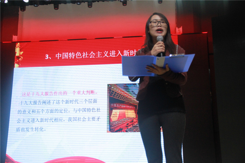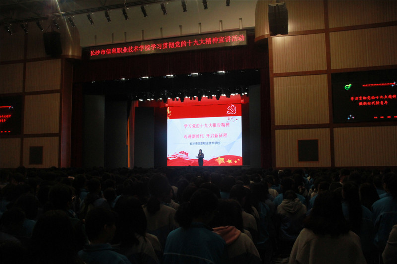 为在全校掀起学习宣传贯彻党的十九大精神热潮,落实党的十九大精神进校园,11月15日,我校举办了学习贯彻党的十九大精神宣讲报告,报告由校团委副书记黄丽辉主讲,全校师生参与了此次宣讲会。