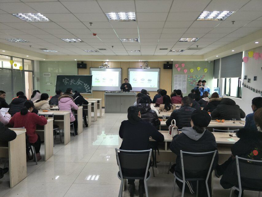 2018年1月19日,我校1718班45位家长在技馨楼205教室举行了来校后的第一次家长座谈会。本次座谈会由班委会全程策划、组织,座谈会开始之前班委员精心布置了现场。布置了成长足迹、我的梦想、周报展示、作品展示四个区域。伴随着主持人李静妮、蒋羽希热情的问候声,拉开了家长会的序幕。第一个环节,班主任方祥老师首先介绍了学校的基本情况及长沙市幼儿师范专科学校的建设情况;其次,对班级学生情况进行了逐一地点评;最后,方祥老师对带班理论及思路与家长进行了沟通。第二个环节,学生代表洪庆乐讲述了自己在学校里的生活和学习情况,以及自己取得的进步;班干部代表孙媛就学校寝室管理制度、班委员基本情况进行了说明。第三个环节,家长通过观看视频、浏览书信感悟孩子的成长,并在留言纸上写下家长对学生的鼓励,随后家长代表唐斐然爸爸发言,感谢学校及班主任老师对自己孩子的关心与培养,通过细节诉说孩子的成长与变化。最后一个环节,班主任和家长就手机管理问题和孩子三年及三年后发展问题进行了深入的沟通。