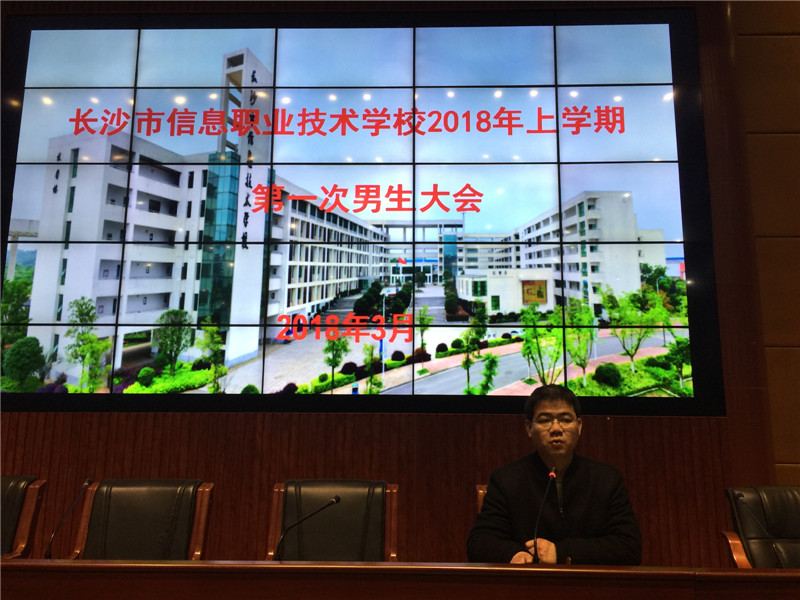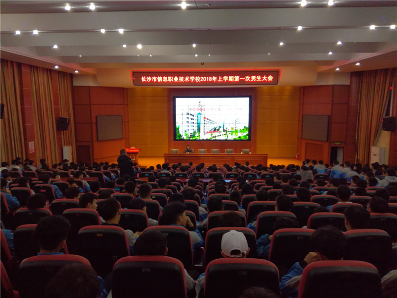 为了提高学生的安全防范意识,强化常规教育,进一步在男生中营造良好的学习和生活氛围,2018年3月13日19:50,长沙市信息职业技术学校2018年第一次男生教育大会在汇智厅隆重举行,全体男生与会。