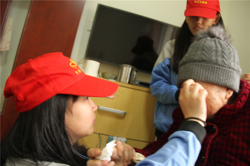 志愿者们走进老人、为老人打扫卫生,给老人表演节目、细心为老人按摩,倾听老人述说那些过去的故事。这群一年级计算机班的学生,平时在家中做的事情不多,走进敬老院后一个个俨然成了小能手,他们帮助老人一起买菜、在厨房帮忙一起炒菜给老人吃、安慰老人、逗老人开心、寻找话题温暖老人,炒得菜还收获了老人的一致好评。