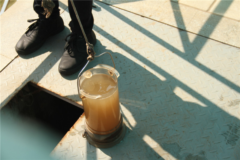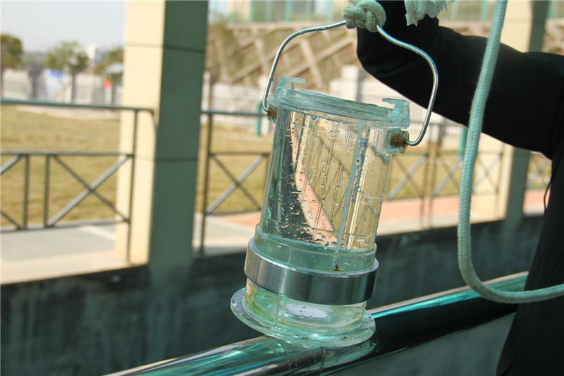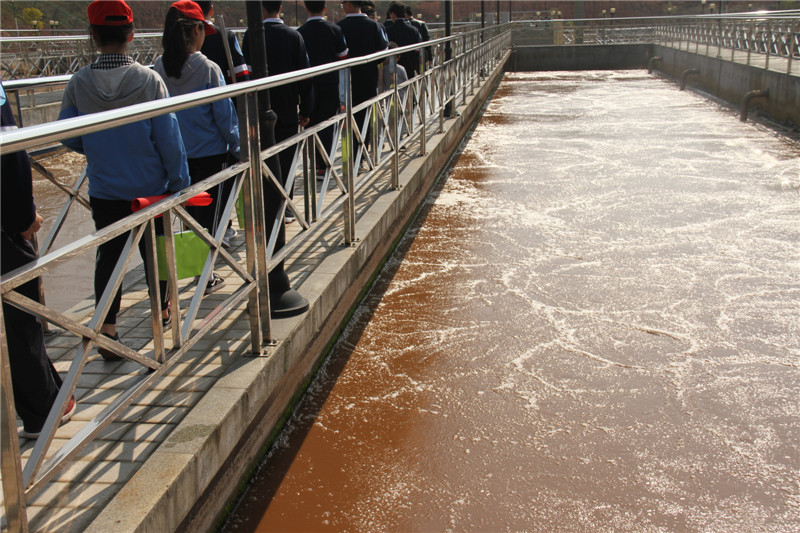 同学们经过了沙渣外运的大型泵房,来到了旋流沉沙池、氧池,看到污水经过一道道工序后流入沉池,流入配水井,通过空气等一系列的加工环节到了高密度沉淀池,最后通过V型滤池汇去到了紫外消毒池。亲眼看到一桶浑浊污水变得清澈可利用,他们激动不已,响起阵阵掌声。