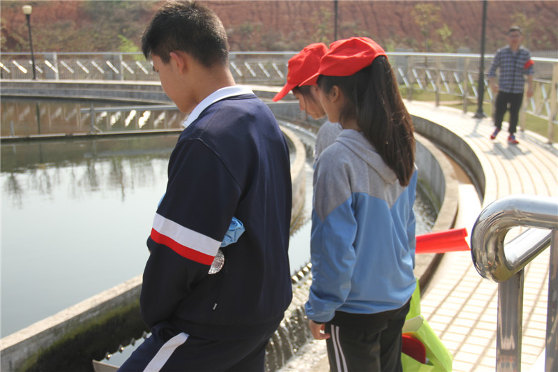 在污水处理厂工作人员的带领下,同学们参与了水资源的合理使用知识抢答及抽奖环节;现场参观了污水处理场,零距离接触了污水变清水的过程,了解了沉淀池、滤池、清水池等工序的作用。