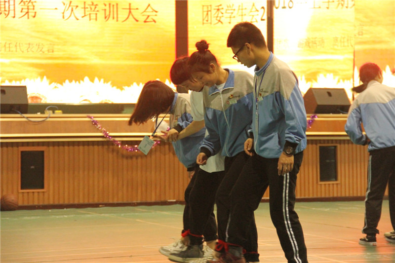 培训大会在慷慨激昂的团歌中开始,本次培训会主题为“合作 共赢”主要目的为加强全体学生会成员的团结协作性,培训会采用素质拓展形式,设置了相应的团队拓展环节。