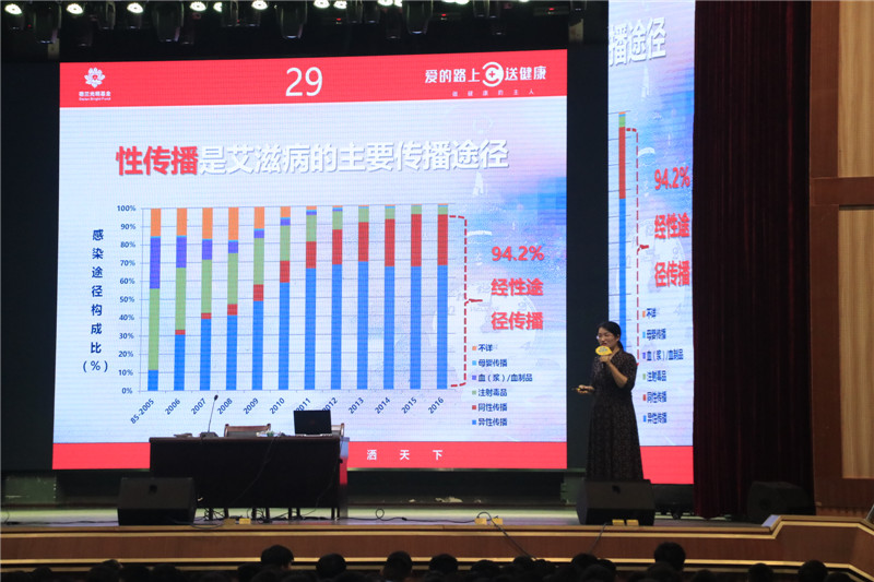 为了加强艾滋病防控工作,增强我校学生防病意识,遏制艾滋病的传播,通过艾滋病防控知识宣传,帮助学生树立起正确的爱情观,为健康的青春与幸福的人生奠定良好的基础,4月17日,由德兰光明基金会带来的艾滋病防控知识讲座在汇美馆隆重举行。本次讲座由我校学生科主办,同升街道健康促进委员会协办,主持人为湖南经视台主播王欢,省妇幼妇女儿童保健科副主任医生陈小英女士主讲。
