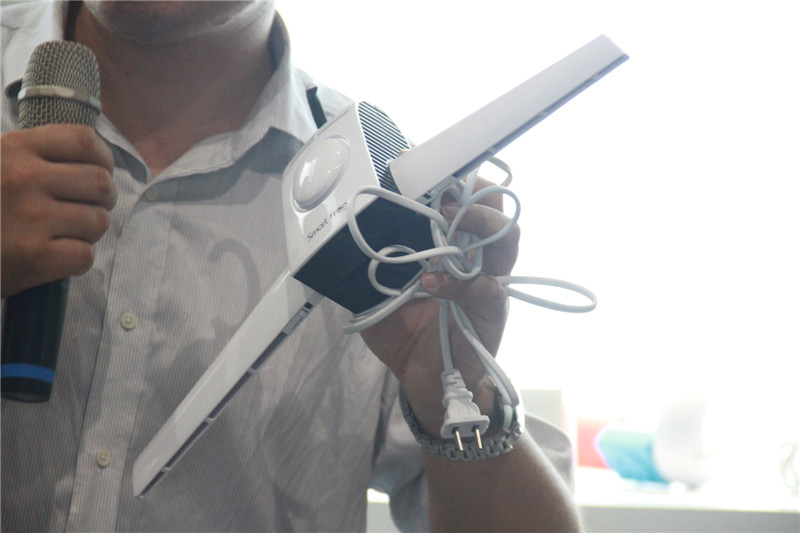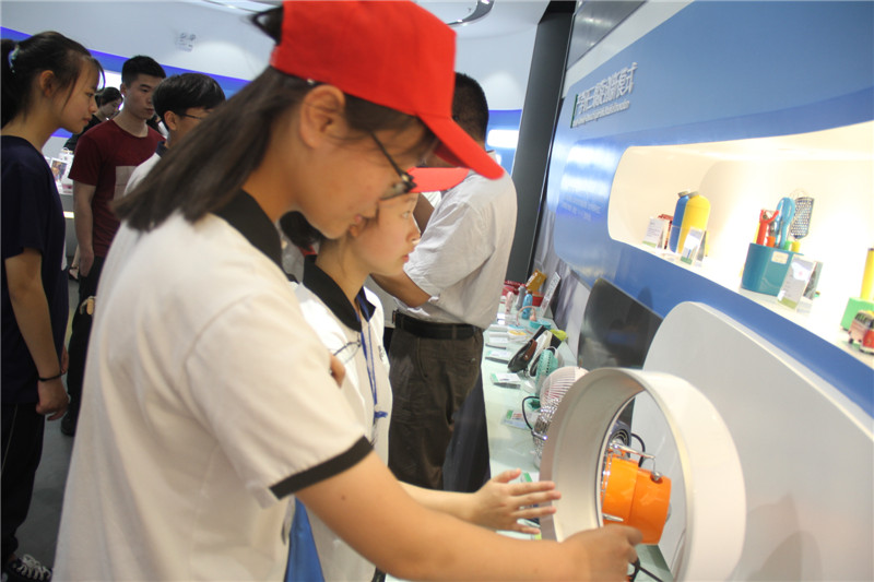 讲解人员带领志愿者参观了园内各个创新创业项目,包括无人机、3D打印技术、母婴用品、日常生活用品、能源汽车等。看着一个个与生活息息相关却不常见的新型产品,像恒温易冲奶瓶、智能冲奶机、家庭教育机器人、无扇叶电风扇、智能感应灯、家用制氧机、智能晒衣架、防水耳机等,同学们顿感新奇无比,一个个争先恐后上前观摩、尝试,纷纷惊叹于人类的智慧。