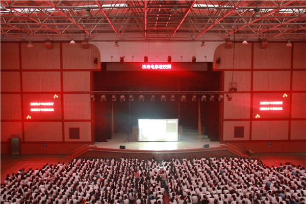 学生科周曦科长在电影放映最后总结道:“法治电影进校园”活动是省教育厅和司法厅共同发起的,目的是加强青少年学生网络教育,教育引导青少年学生正确上网、文明上网,防止和避免负面网络信息对青少年学生的不良影响;加强青少年学生人生观、爱情观教育,引导教育正处于青春朦胧期和冲动期的青少年,要以史为鉴,树立正确的人生观、爱情观;对青少年进行法治理念教育,引导教育青少年从小树立法律面前人人平等的民主法治理念,坚决反对封建特权思想。