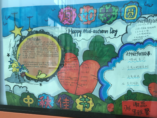 我校展开了以“喜迎国庆,圆梦中华”以及“喜迎中秋,月入梦圆”为主题的海报与手抄报的评选。其中,一年级的主题为“喜迎国庆,圆梦中华”,二、三年级的是“喜迎中秋,月入梦圆”。在这次活动中,大家都踊跃的参与,好的作品一幅幅接踵而至。