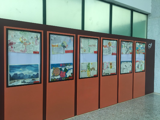 为了鼓励优秀激励进步,学校将优秀作品展示在德馨楼大厅内,不失为一道亮丽的风景。