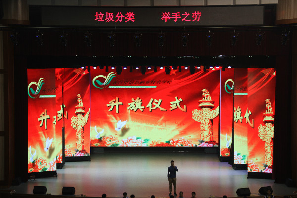 为了普及垃圾分类知识和提高环保意识,11月5日,我校1708班同学在汇美馆主讲了“垃圾分类 举手之劳”的国旗下讲话.