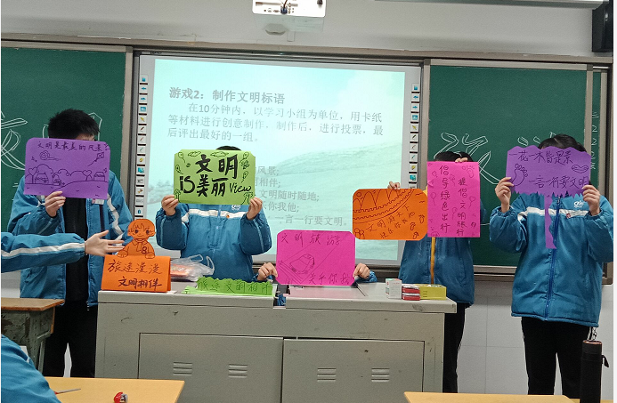 其中,1702班参照《中国公民出境旅游行为指南》学习了旅游基本素质,还通过分组制作文明旅游标语的活动,增进了对文明旅游的认知;1613班不仅条理分明的学习了国外优秀的文明素质,还联合实际,就如何争创“文明班级”进行了探讨和反思;1805班不仅通过视频、新闻、交通规则学习了知识、形成了意识,还从文明行路、文明乘车、文明骑车三个方面对学生做出了要求。