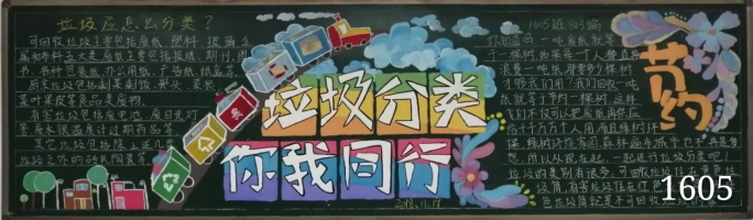 垃圾分类是对垃圾收集处置传统方式的改革,是对垃圾进行有效处置的一种科学管理方法。为了让学生养成良好的垃圾分类习惯,我校于十一月出版了一期“垃圾分类 你我同行”的黑板报。