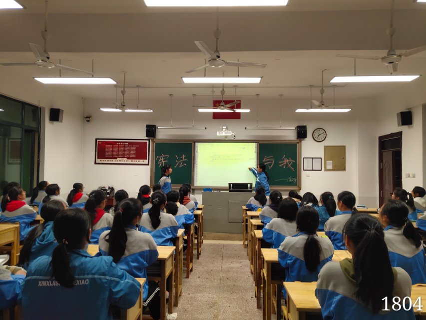 各班开展情况如下:1805班学习宪法的特点和有关知识,制定宪法的严格,整体纪律良好,参与程度高,1710进行了宪法的宣誓,看重宪法的重要。1807进行了有关的小游戏,气氛十分好,主持人大方。1715通过情景剧让同学们加深了对宪法的认识。1808进行了“筷子传钥匙”小游戏,氛围十分好;1716提问国家宪法有哪些,回答积极。17014观看了有关宪法的小视频让同学对宪法印象深刻。1702对宪法进行宣传作品创新。1603了解宪法法律。1717进行了关于宪法小知识的了解与提问。这次还有很多班级进行了宣誓。气氛十分好。