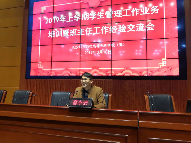 2019年3月10日晚,学生科在汇智厅组织开展了2019年上学期学生管理工作业务培训暨班主任工作经验交流会,学生科副科长彭繁珍主持、1805班班主任老师雷小云主讲,全体班主任参会。