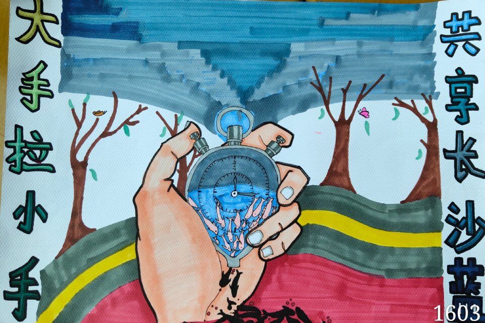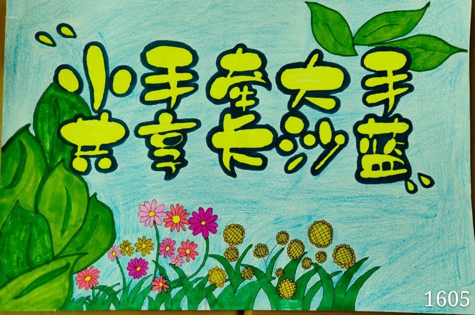 手抄报海报:“小手牵大手 共享长沙蓝”手抄报海报高三年级的同学也积极参与了1604手抄报用动物可爱的风格来进行绘画颜色大部分采用蓝色和绿色突出主题;1603手抄报用了简单的图案作为边框,但是简洁干净的美;1605手抄报大部分都是字体,用了花卉边框简单大方;1603海报画了时间计时表含义很深;1605海报用简单的构图大方得体。