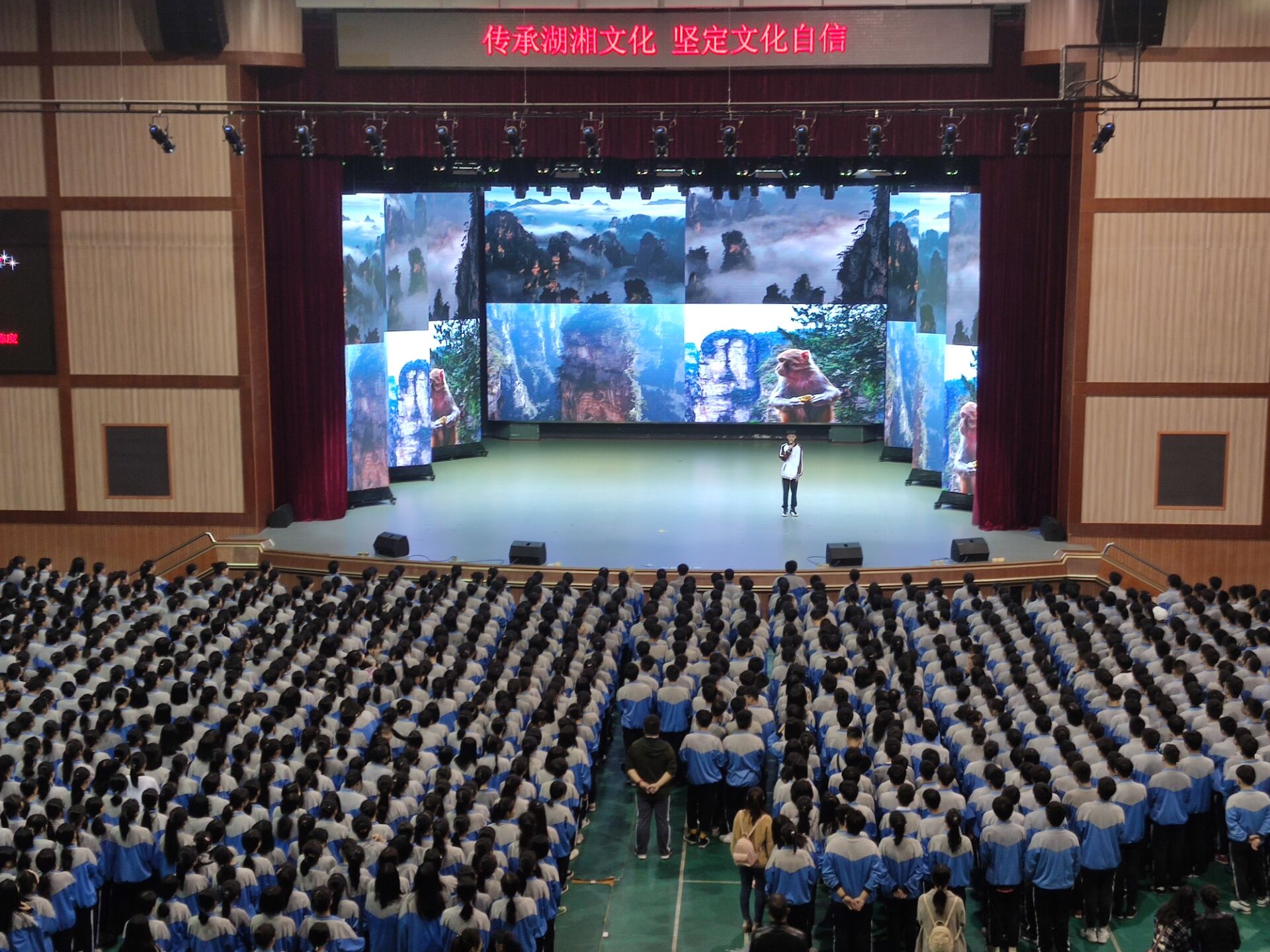 在中华民族发展史上扮演着重要角色的湖南,有着自己的特色地域文化——湖湘文化,千百年来,湖湘文化哺育培养了一代又一代湖湘优秀人才。为了探究湖湘文化到底是什么?湖湘文化现今有何价值?身为湖湘儿女的我们该如何传承和弘扬湖湘文化?2019年4月22日,由1812班主讲的“传承湖湘文化 坚定文化自信”国旗下讲话于汇美馆举行。