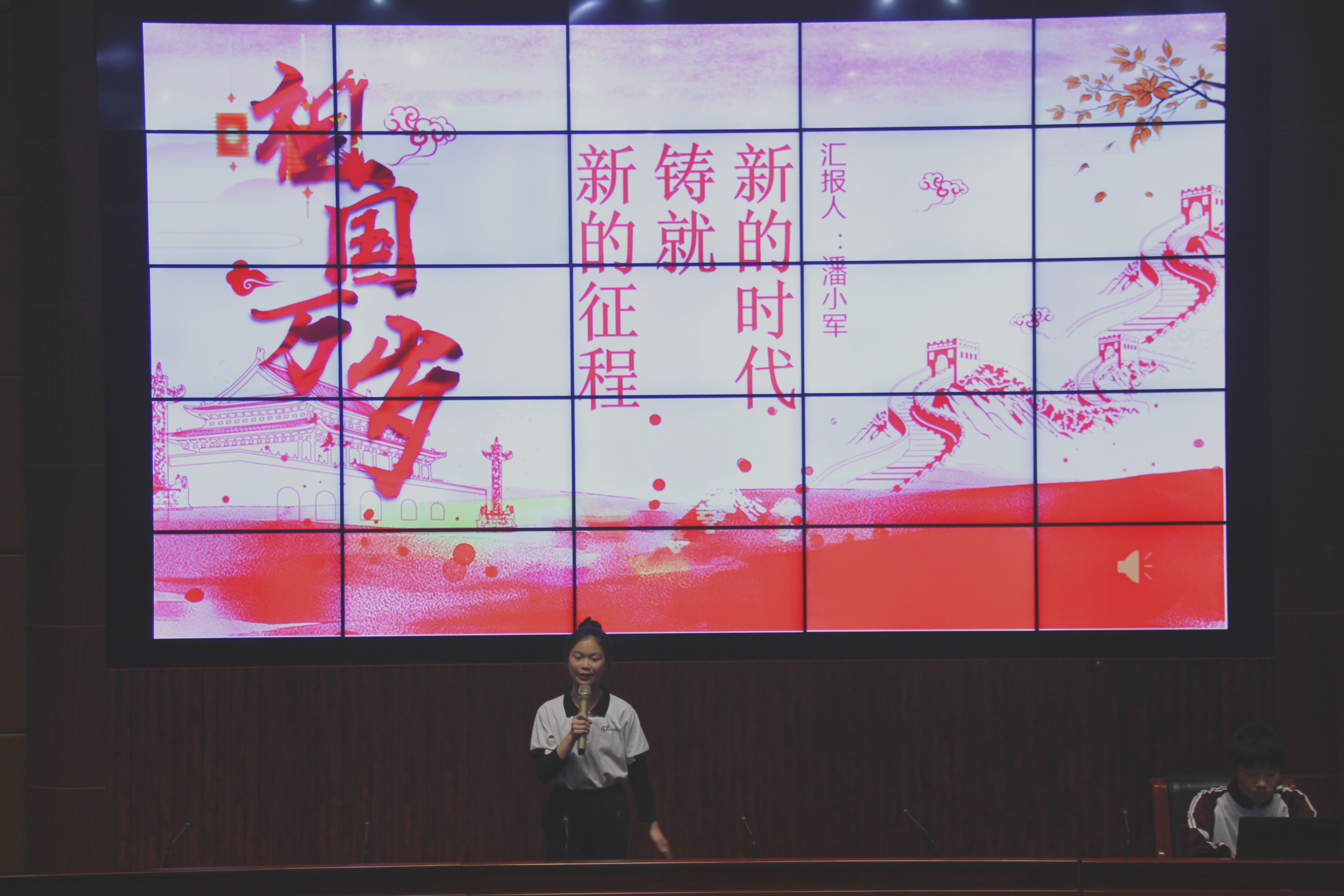 为扎实推进学校德育工作改革与创新,进一步加强学校爱国教育宣传阵地建设,提高学生普通话口语技能水平,全面提升学生的人文素养,2019年5月9日晚以“承爱国精神,诵时代经典”为主题的朗读者大赛决赛在我校汇智厅顺利举行。团委副书记黄丽辉、学生科副科长彭繁珍出席活动。