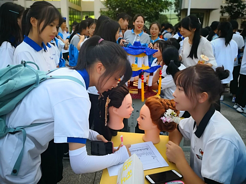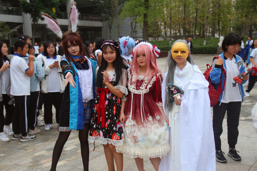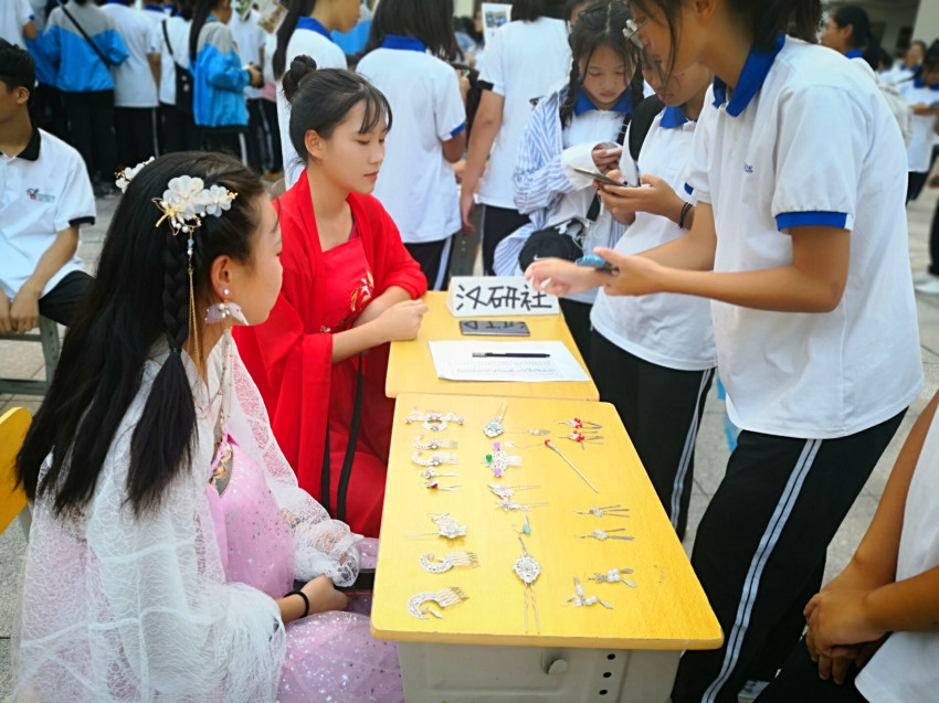 招新开始,文学类、艺术类、体育类、手工类、实践类共计22个社团提前到达招新地点,各出奇招,一个个节目轮番上演,展现了我校社团文化的丰富多彩。汉研社穿上代表中国文化的汉服与小萌新们合照;音乐社律动青春,歌声美妙;爵士舞社帅气的舞姿赢得了阵阵掌声;乒乓球社的社员现场挥起了乒乓球拍,大显国球风采;动漫社的社员们玩起了cosplay,扮演着漫画中的人物,格外引人注目;其他社团也不甘雌伏,活动同样精彩。