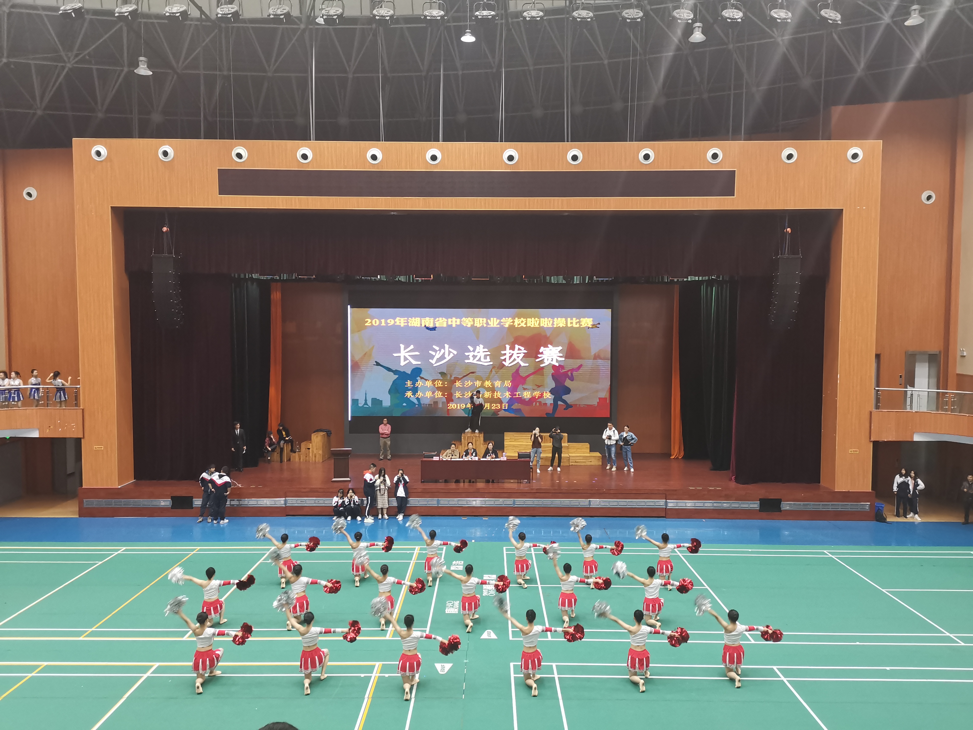 10月23日上午,湖南省中等职业学校啦啦操比赛长沙选拔赛在长沙市高新技术工程学校圆满落幕。我校1705班18名选手参赛,通过与其他10支队伍地激烈角逐,最终顺利突围,成功获得省赛资格。