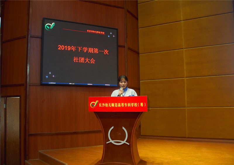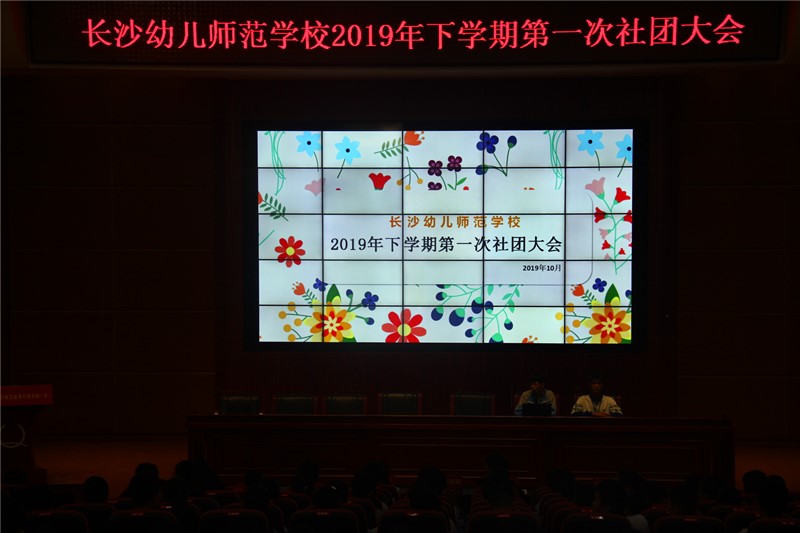 为进一步加强校园文化建设,促进各社团之间的交流协作,丰富学生的课余生活,2019年11月7日中午12:50,我校社团部在汇智厅召开了新学期第一次社团大会。参加本次会议的有学生科副科长彭繁珍,团委副书记黄丽辉、冯叶,学生科徐丹丹老师,礼仪社胡蓉老师、书法社李剑波老师、表演社刘千红老师以及全校22个社团的全体社员。
