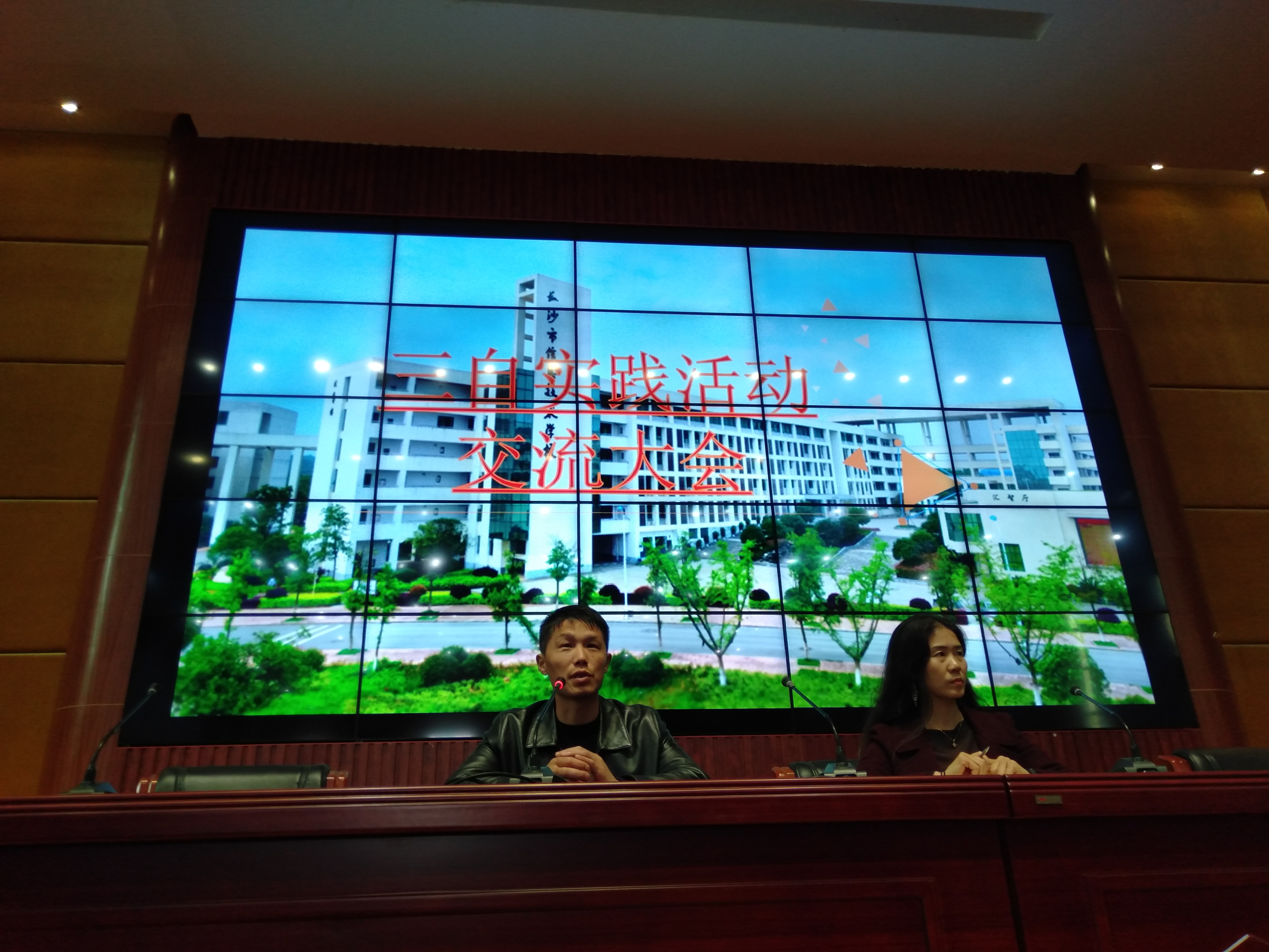 为了更好的发挥三自教育实践活动的作用,搭建互学互鉴的交流平台,让学生进一步了解三自蕴含的深刻内涵,升华三自教育实践活动的意义。我校于2019年11月21日中午在汇智厅召开“三自”经验交流会。