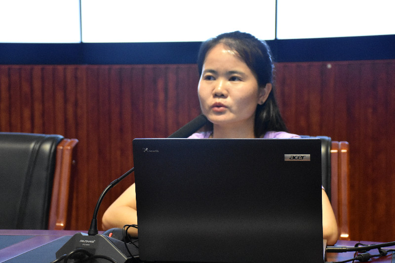 彭繁珍先就学校近段时间多名学生感冒的情况进行了通报,然后邹雯辉老师针对宿管员进行宿舍疾病防控管理培训,她主要从“出寝前的晨检,宿管老师需要做什么”和“宿舍通风消毒如何开展”两个方面展开,晨检方面要求宿管老师提醒学生自测后还要随机抽查,通风消毒方面先说明了坚持消毒在学生出寝后进行,应以清洁为主,预防性消毒为辅的原则,然后逐一说明不同物品的消毒要求;
