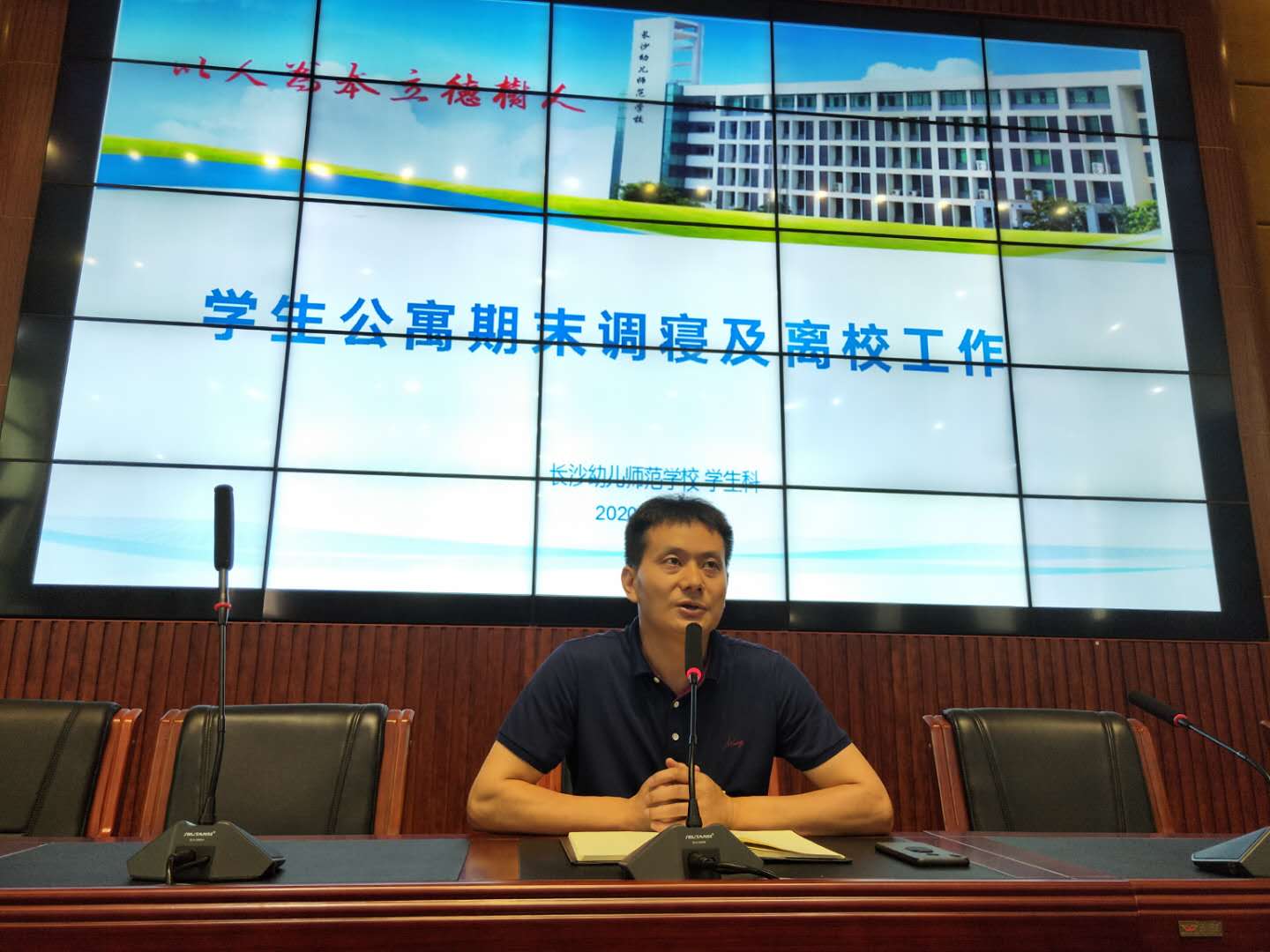 文明离校工作,是我校德育工作的重要内容,是学校“全员育人、全程育人、全方位育人”的重要环节,也是体现和检验学校教育与管理水平的重要方面。为切实做好文明离校工作,7月1日中午🏋🏼,学生科在汇智厅组织召开2020年上学期学生公寓调寝和离校工作布置大会🧑🦯。学生科、各系部🥲、全体班主任和全体生活老师参加会议。校长助理兼学生科科长刘建乐主持会议🏝。