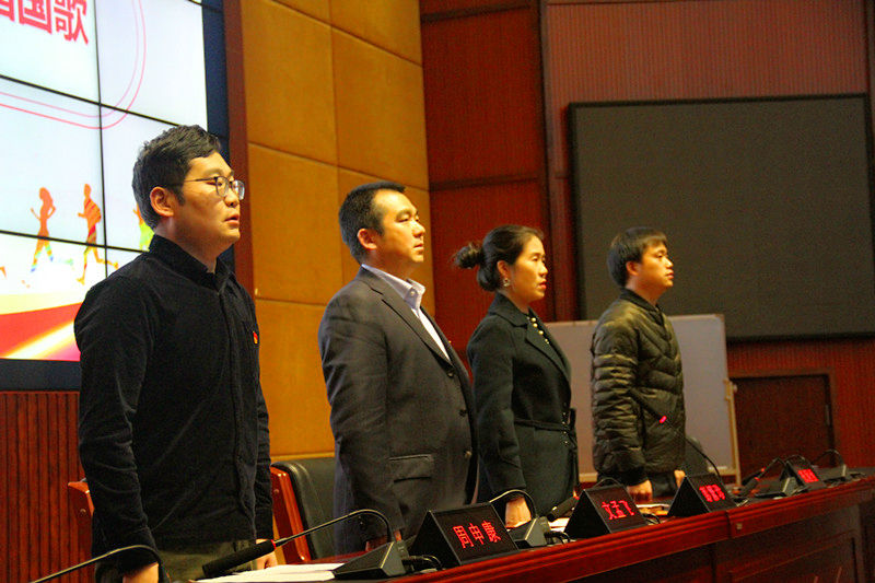 随着昂扬国歌奏响,结业典礼正式开始。首先,大家通过一段短片回顾了本次团校学习班的整个过程,随后,祝居里做了团校学习班的总结,接着周申康宣读了“关于准予1801梁王伟等59名学员结业和表彰1912班周纯等8名“优秀学员”的决定”,然后现场为“优秀学员”颁发了证书,并由优秀学员代表、本次学习班班长贺碧婷同学做了总结发言。