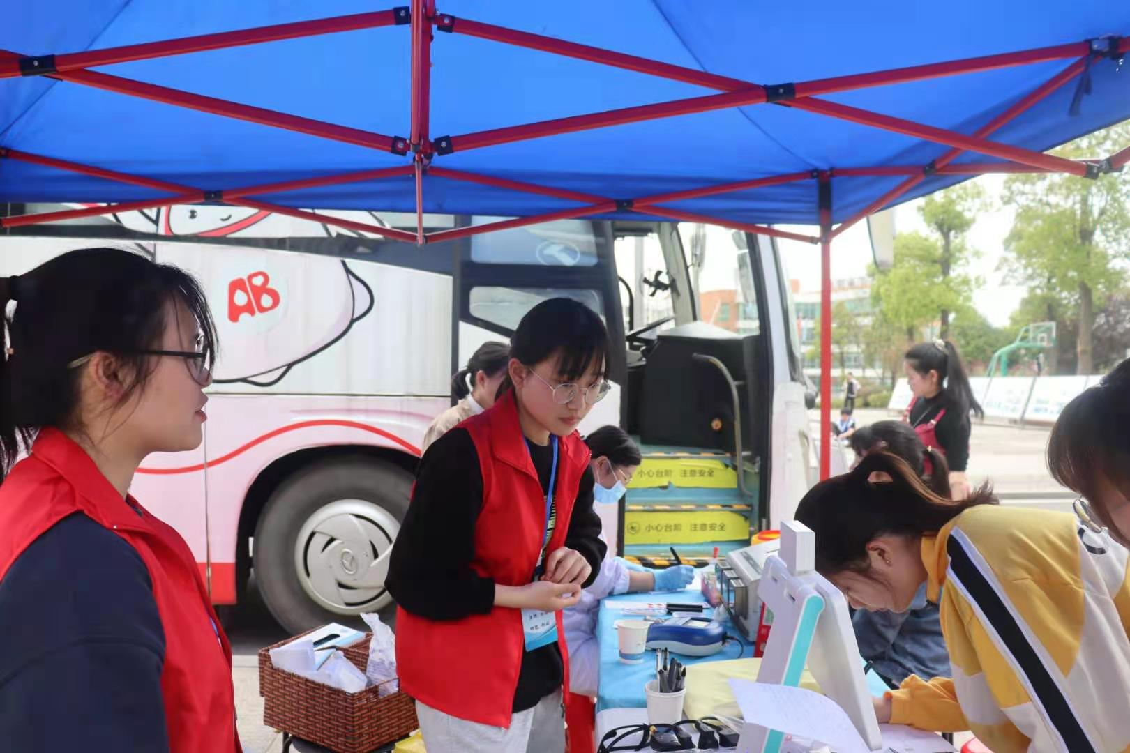 3月25日上午九点五十,学工处、团委联合长沙血液中心开展的学雷锋无偿献血活动在东校区操场前坪正式拉开帷幕。