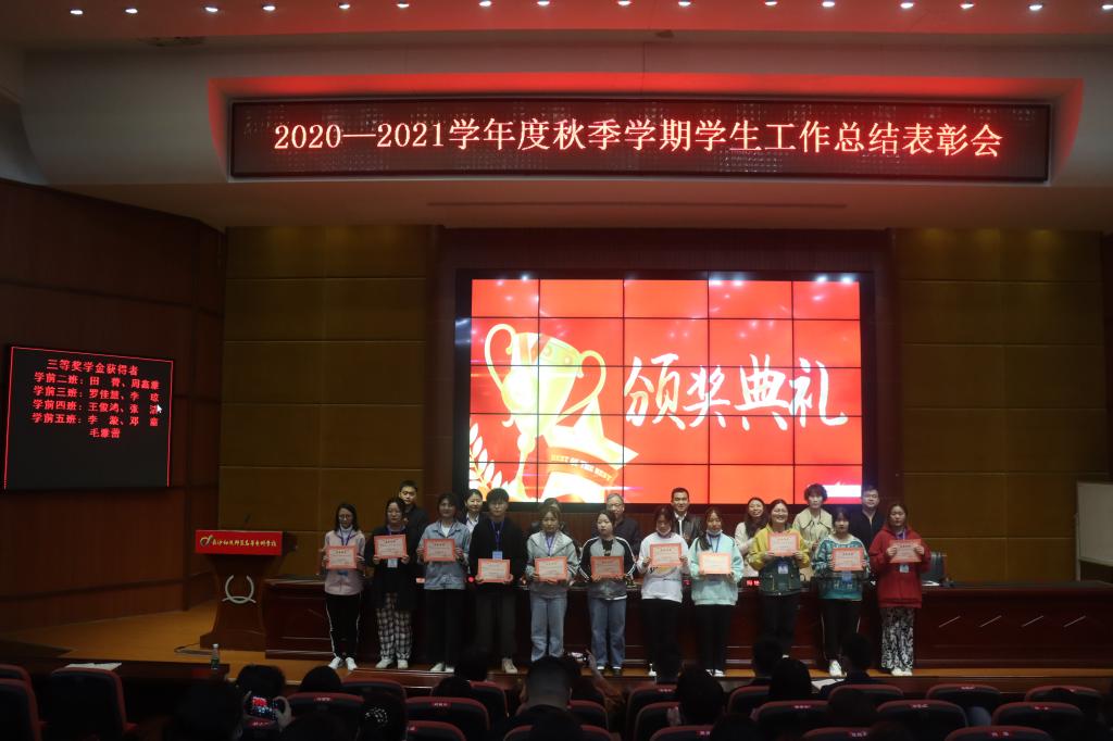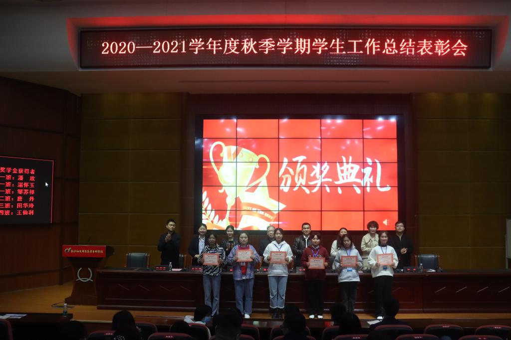 2021年3月31日下午,神彩争霸8安卓下老版本在汇智厅召开2020-2021学年度秋季学期学生工作总结表彰大会。党委书记张国斌、副校长文孟飞、学工处处长彭繁珍、各系部主任和德育主任出席大会。学工处全体干事、各系部干事、大专辅导员、大专部任课教师和全体大一新生参加本次大会。会议由学工处副处长彭亮主持。