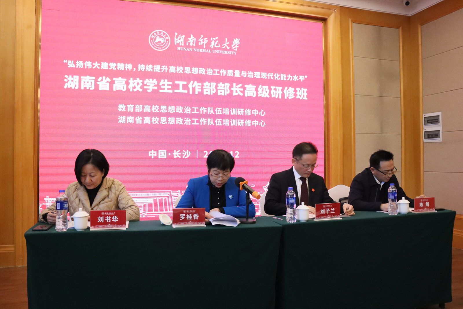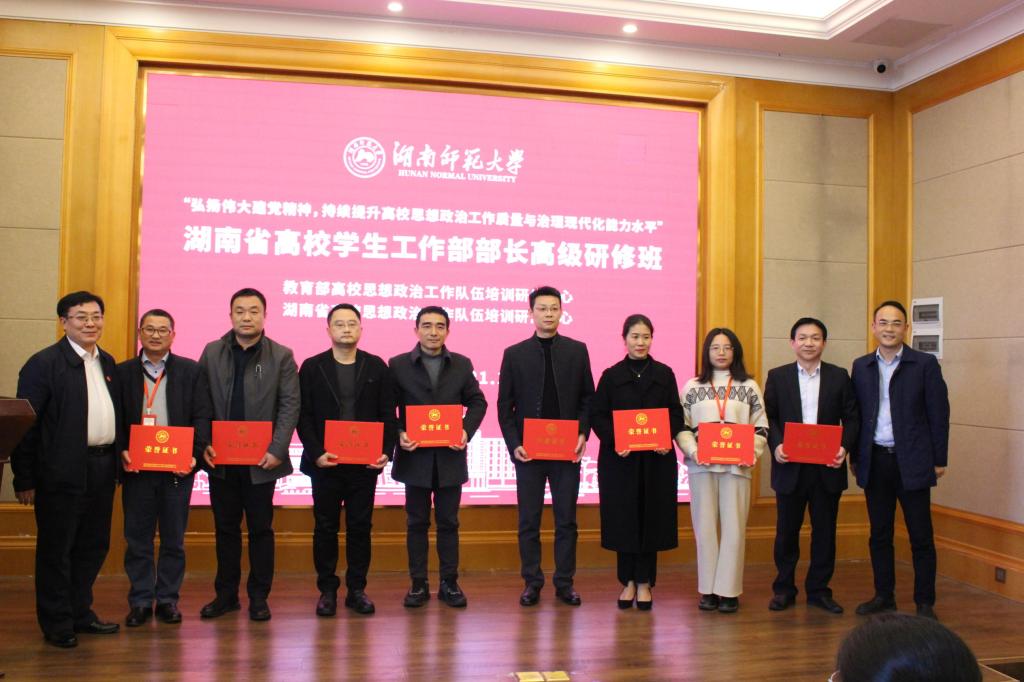 12月21日下午,2021年湖南高校学生工作部部长高级研修班在湖南师范大学举行结业典礼。教育厅党组成员、省教育工委委员罗桂香,省教育厅、省委教育工委宣传部部长刘书华,二级调研员陈解,湖南师大副校长刘子兰出席。来自全省109所高校的学工部长参加典礼。