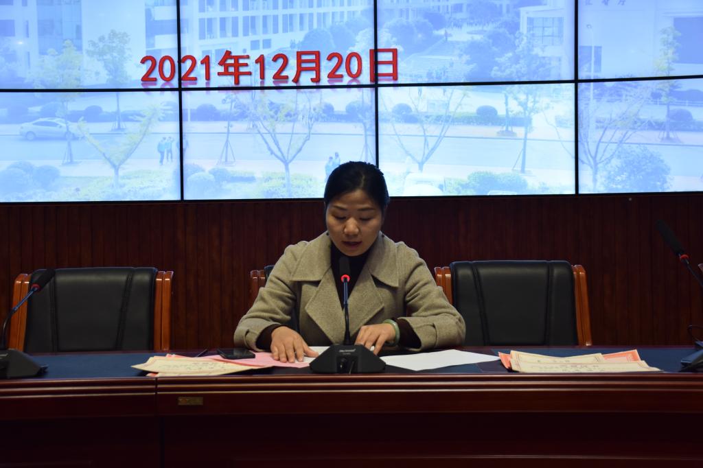 2021年12月21日18:30,我校在汇智厅举行2021年“欢迎回家”德育实践活动总结表彰大会,学工处副处长彭亮、信息技术系副主任王潇翔、学工处邹雯辉老师、廖小勇老师,学前教育系丰丹老师出席会议。大专生全体寝室长、宿舍管理委员会全体成员、以及获得表彰的优秀寝室代表和优秀个人参加大会。宿管部部长贺倩主持会议。