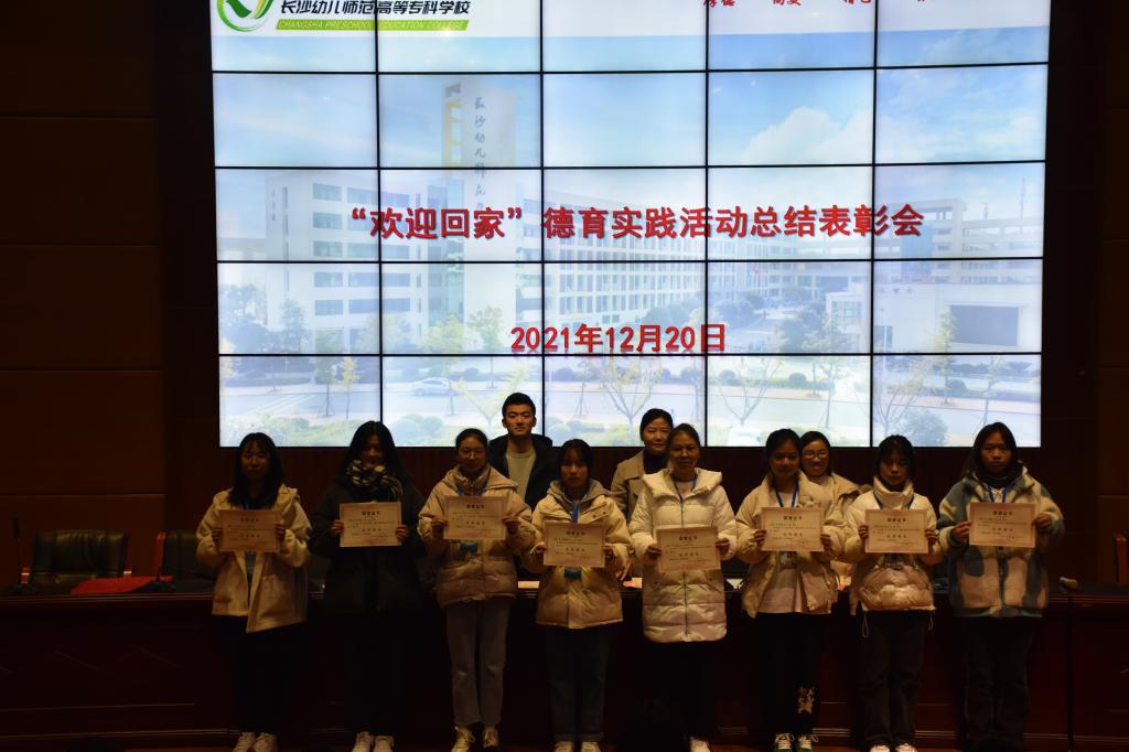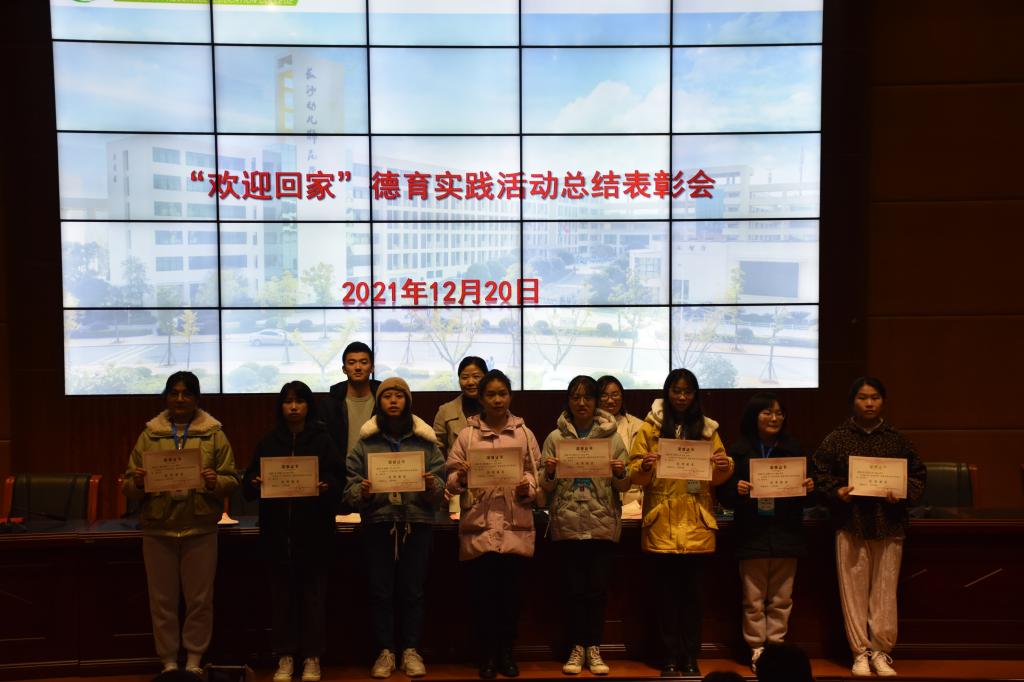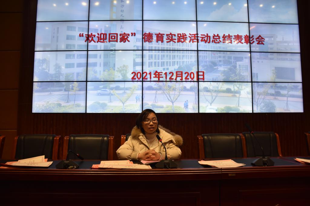 邹雯辉对2021年“欢迎回家”德育实践活动做成果汇报,指出活动的实施背景、组成部分及活动内涵,并就“欢迎回家”的四大板块一一总结点评,提出会继续丰富“欢迎回家”活动内涵,拓展“红色家园”板块,加大党团建设进宿舍力度。廖小勇老师宣读“欢迎回家”总结表彰决定,共表彰优秀个人77位、优秀寝室56间,并颁发荣誉证书。优秀个人代表2020级学前四班罗冠、2020级舞蹈教育邓昀、2021级数媒一班尹欢依次上台发言。