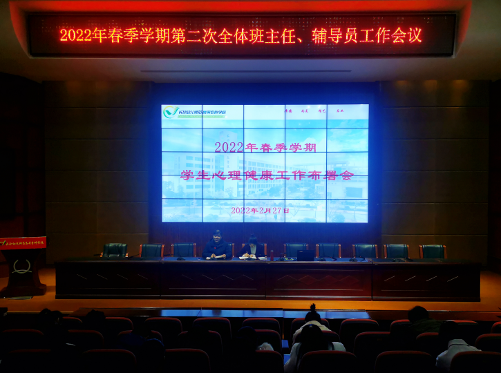 2月17日19:00,我校2022年春季学期第二次全体学工人员会议在汇智厅召开,学工处处长彭繁珍、副处长彭亮、副处长兼团委副书记祝居里、各系德育副主任出席会议,各系德育干事、全体辅导员、班主任参加会议,大会由彭繁珍主持。